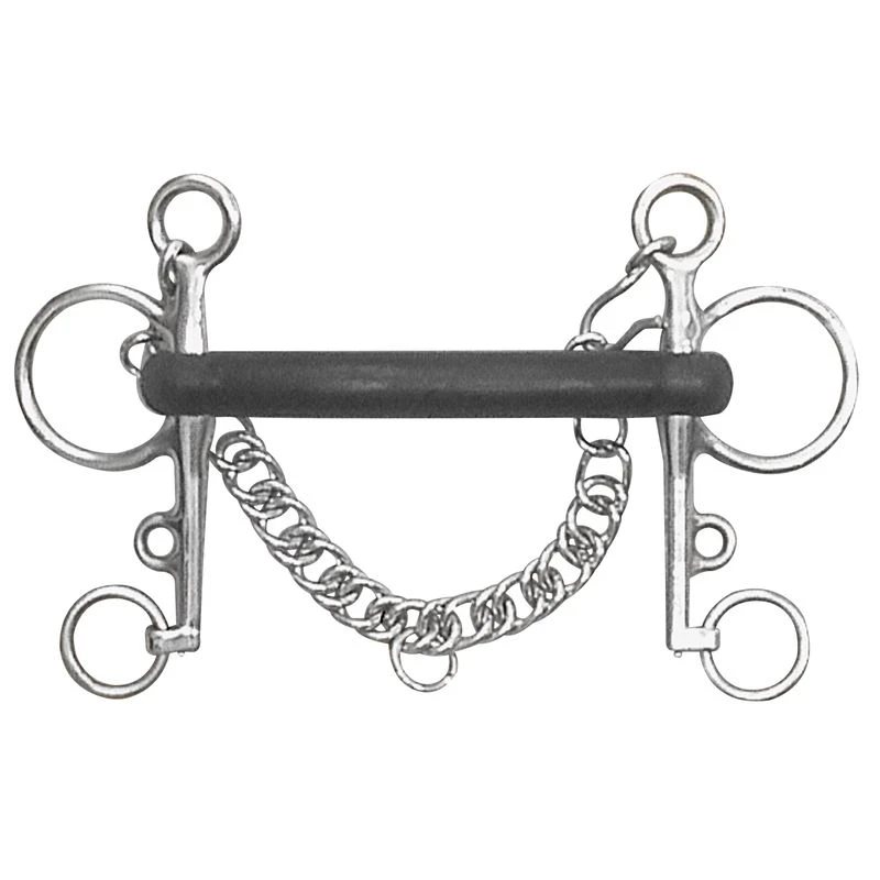 The Mullen Soft Rubber Pelham is designed 4.5″ cheeks. Each side of the bit is perfectly balanced to assure total comfort and response. Lost wax cast and hand polished from the highest grade of 18/8 Stainless Steel. Lifetime guarantee against rust.