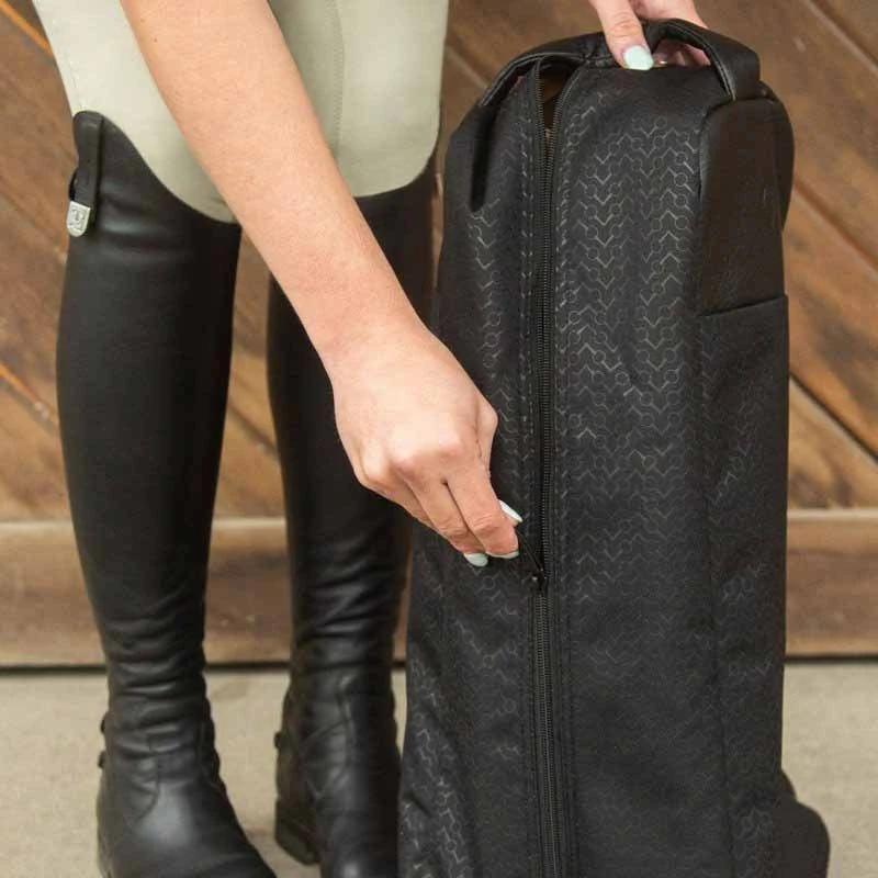 The Kerrits Equestrian Boot Bag is both fun and functional. This boot bag features a detachable shoulder strap leaving hands free to carry other items. A hidden side pocket organizes socks, boot pulls, and other accessories. Features of the Kerrits Boot Bag include: